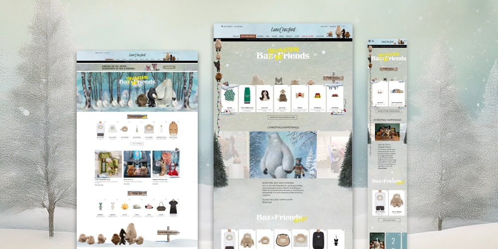 The campaign introduced 4 little buddies — Baz, Mini Baz, Rox, and Max — to guide customers through seasonal offers, events, and gifting. The goal was to create a dynamic, immersive page that not only captured the festive spirit but also inspired exploration across Lane Crawford’s luxury categories.